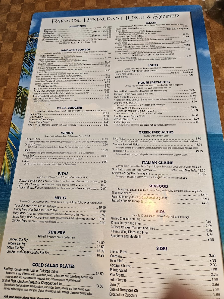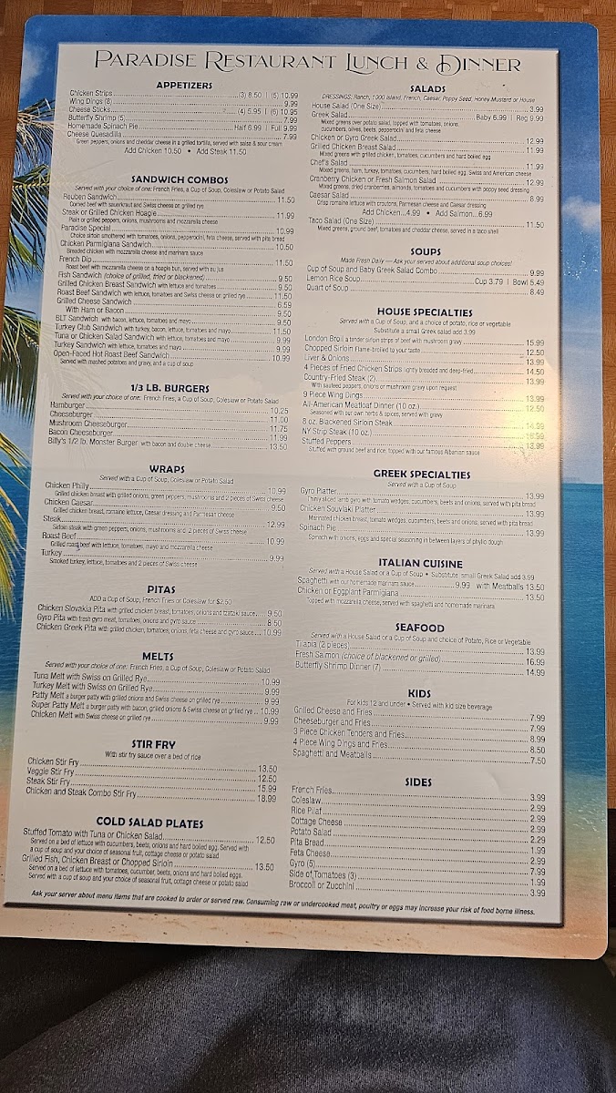 What sets Paradise Restaurant apart is not just the generous portions and homely atmosphere, but also the cozy decor that evokes a nostalgic diner feel. Customers rave about the Greek-style omelet and the huge pancakes that can satisfy any appetite. The friendly service complements the delicious flavors, making every visit feel special.